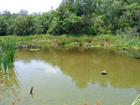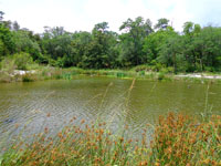 small stream leading into and out of the lake. There are a few picnic benches around the lake to sit and have a relaxing time.