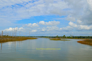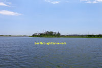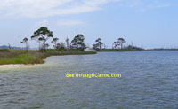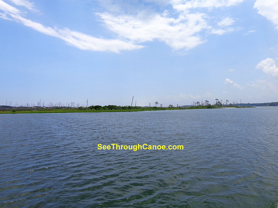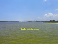 canoe or kayak into this area. There are some deep channels so it is possible to get a small boat in it. There is a thin strip of land that seperates