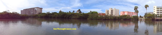 The ICW (Intracoastal Waterway) between Seminole, FL and Indian Shores, FL is often referred to as "the narrows". There are a few man made canals in the ICW in this area. There is also a natural "back bay" area that is seperated from the main part of the ICW by a long mangrove barrier island. There are also some mangrove tunnel areas on the west side of the ICW here. Since I live here, I go canoeing / kayaking in this area very regularly. During the summer months I see manatee almost every other time I go out.