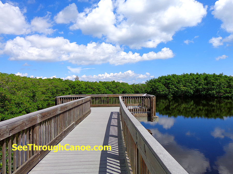 The preserve has many miles of walking trails. There is a paved walking path that runs through the preserve. There is also an elevated boardwalk that runs through the marshy and swamp areas in the park. The boardwalk leads to two different viewing towers that provide great views of the preserve as well as great views of Tampa bay. There is also a viewing platform that overlooks one of the saltwater ponds that connects to the main body of water via a mangrove channel. Plenty of shady seating areas are found throughout the park as well as drinking fountains.