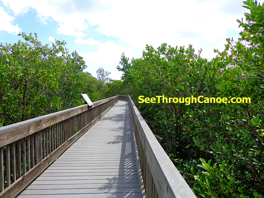 You can pull your car or truck right up to the kayak launch and unload everything, and then park nearby. There is a map at the launch site that shows a kayak / canoe trail through the preserve. The kayak trail takes about 3 hours to paddle and the trail itself is marked with numbered signs to help keep you on the path. Most of the Weedon Island kayak trail takes you through narrow mangrove tunnels. Although the tunnels are narrow, there are plenty of places to turn around if you desire. It would be easy to get in and out of the kayak launch on any tide, but... most of the area is only 1 to 4 feet deep so it might not be as easy to get through the mangrove tunnels or work your way around the numerous mangrove islands on low tide. Weedon Island park gets packed on the weekends. Most of the area is sheltered water and since the water is mostly shallow, you won't find many boats in the places you want to paddle. The boats stay primarily in the marked channel and most of the area is a "no wake" zone.