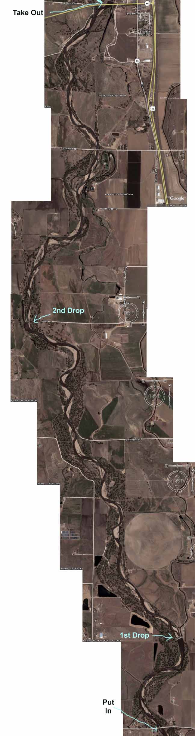 Put In - Take highway 85 to highway 18 (2.6 miles north of Fort Lupton). Go west on highway 18 .5 miles and park on the left, shortly after the bridge.