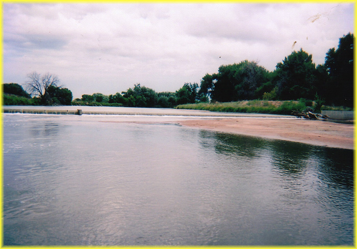 This stretch of the Platte is 8.2 miles and will take about 4 1/2 hours to paddle at a relaxed pace when the water is flowing at 250 CFS. If you don't have a second vehicle, or you just want more exercise, you can ride a bike down highway 85 and highway 25 1/2 to the put in. The bike ride from the Highway 66 take out spot in Platteville to the Highway 18 put in in just north of Fort Lupton is an easy ride that will take an 45 minutes at a good pace. The bike ride will be noisy as there is no bike path so you will be riding on the side of the road. There is plenty of space to the "right of the line" so vehicles will not be flying by right next to you. The take out spot is on the left just after the Highway 66 bridge and it's very hard to miss. The CFS must be above 200 to do this run on you will constantly scrape bottom. A CFS of 400-500 is ideal and as long as it's below 700 it's an easy trip. There are 2 different 3 foot drops that you will probably want to portage around. Portage around these drops is not easy.